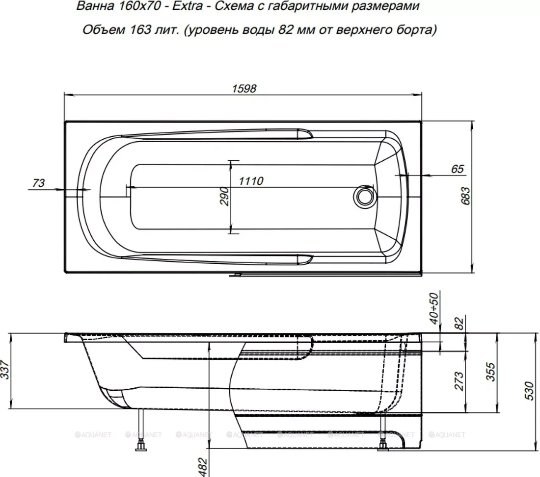 Акриловая ванна Aquanet Extra 254882 160x70 см купить