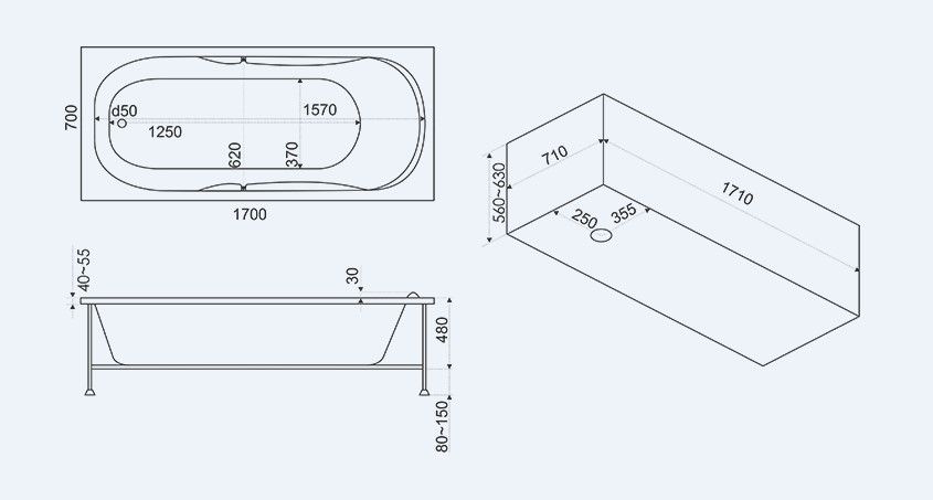 Акриловая ванна Bas Нептун 170x70 см с каркасом купить