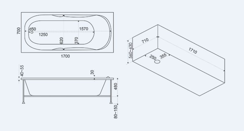 Аэромассаж 8 форсунок, аэромассаж 12 форсунок, аэромассаж гидро-аэро-турбо (при наличии аэромассажа);