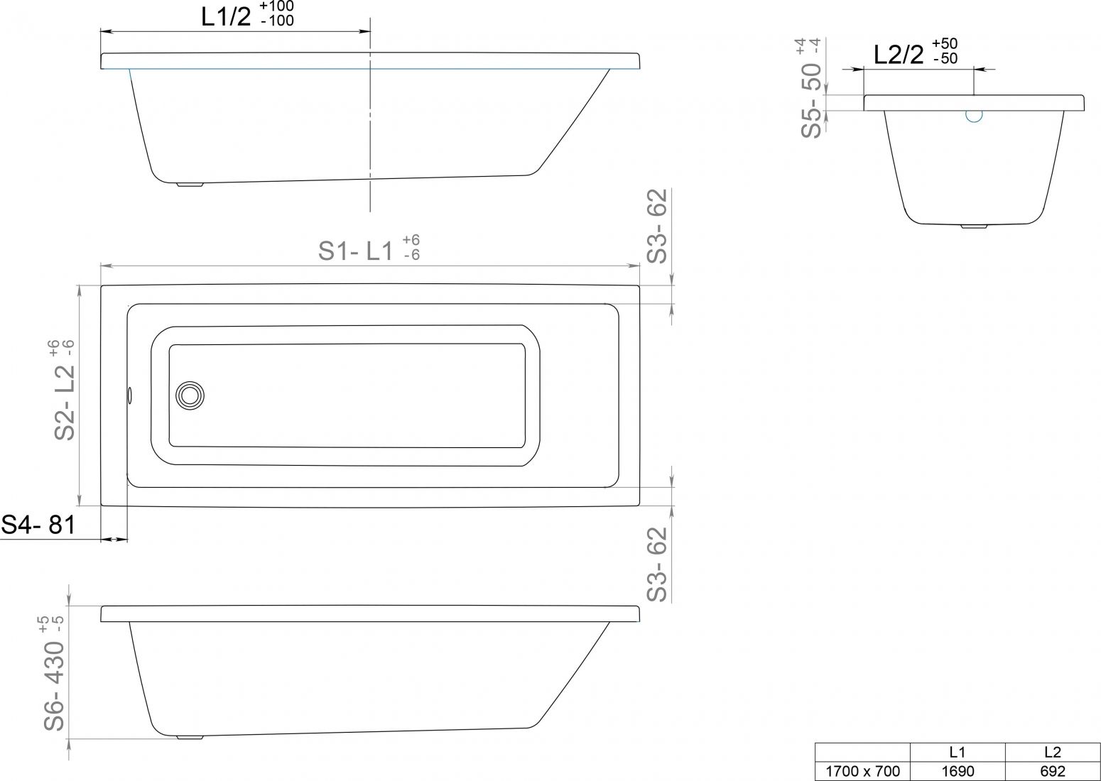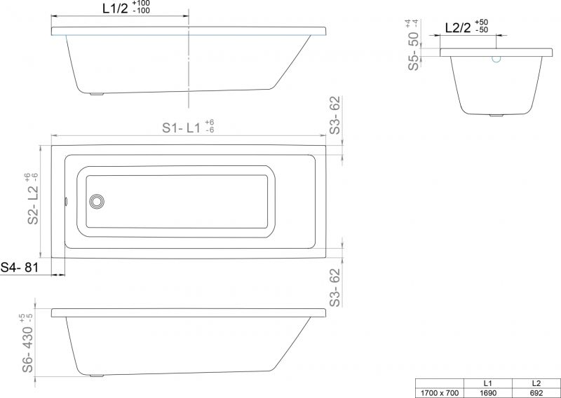 - Стандартные размеры, см:170x70