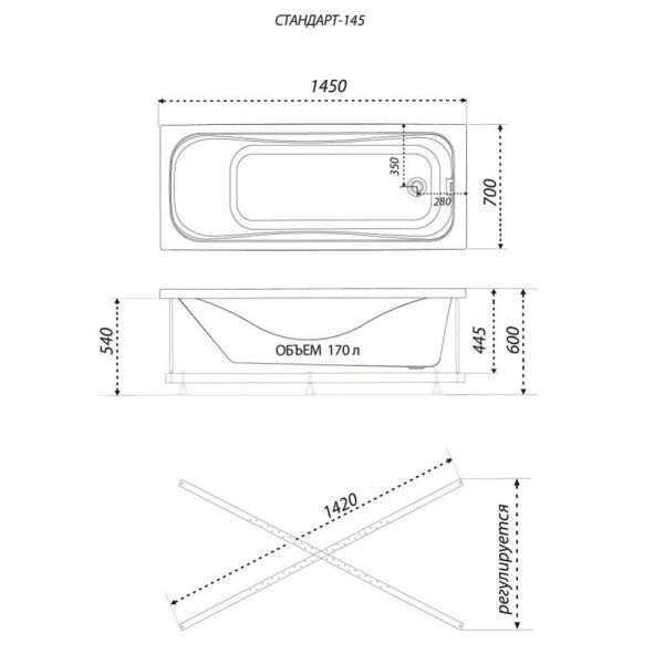 Акриловая ванна Triton Стандарт 145x70 см купить