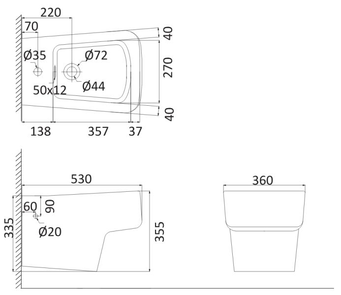 Размер (Ш/Г/В): 36 / 53 / 35.5 см.