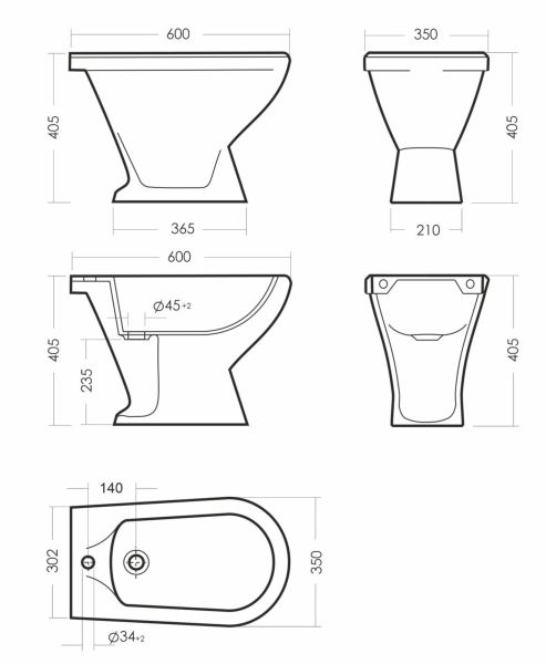 Размеры биде: 260 x 640 x 406
