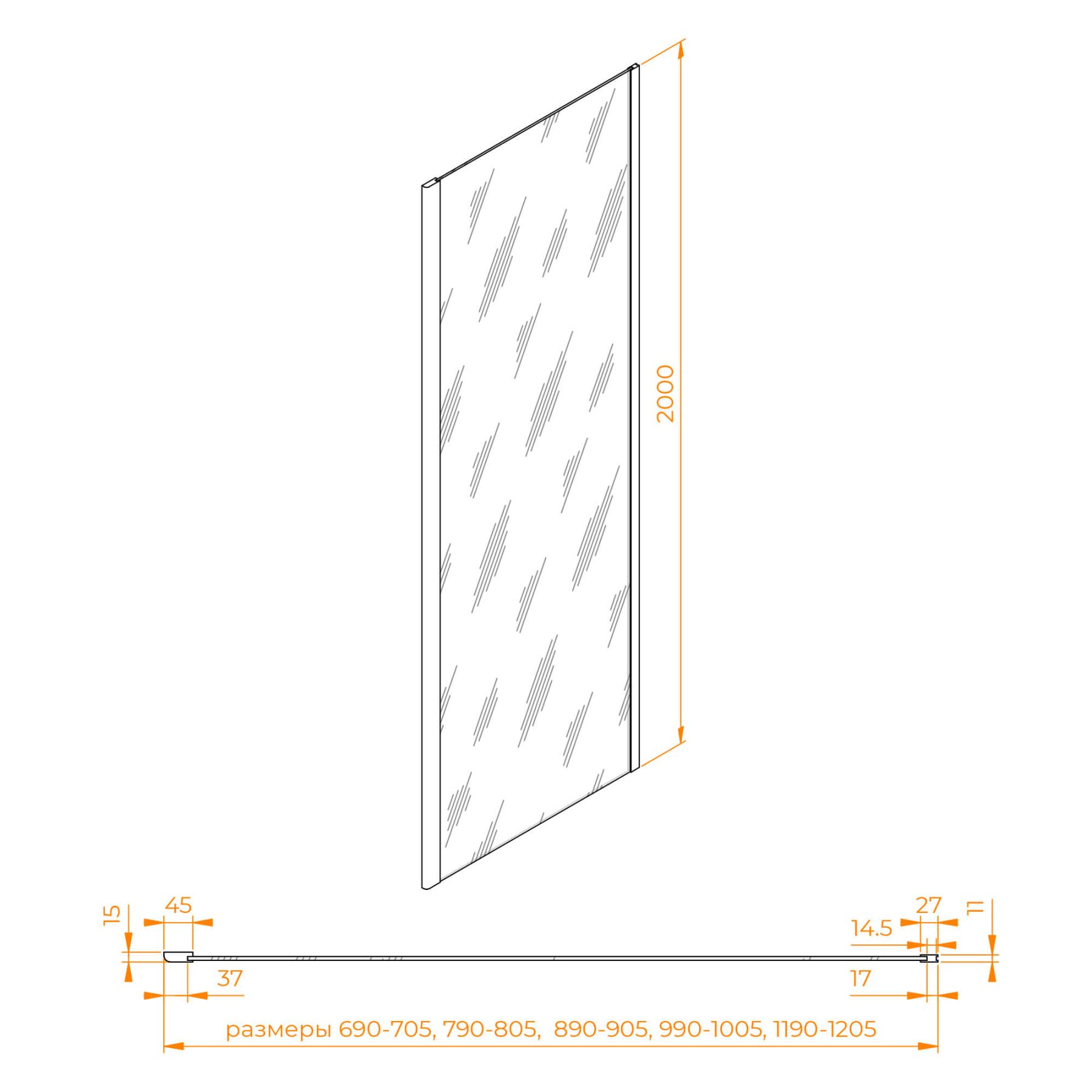Комплектуется с моделями высотой 2000 мм и цветом профиля «хром». Подходит к моделям SV-02 / SV-03