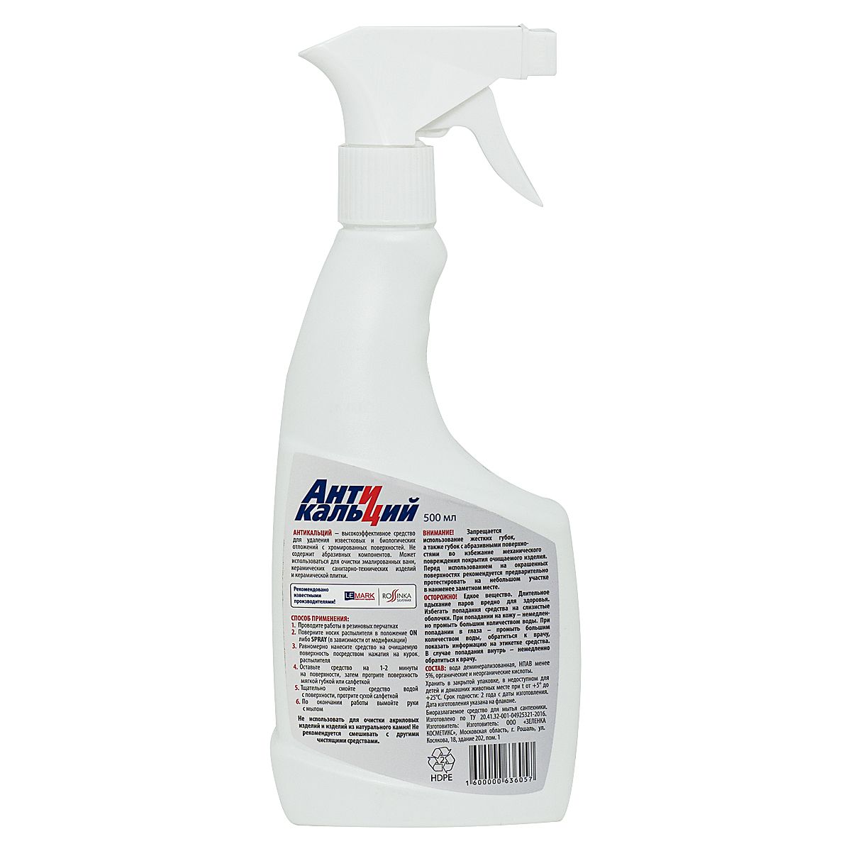 Чистящее средство Lemark Антикальций LM8901A, 500 мл.Подходит для смесителей и других хромированных изделий, а также форсунок гидромассажных систем.АНТИКАЛЬЦИЙ – высокоэффективное средство для удаления известковых и биологических отложений с хромированных поверхностей. Не содержит абразивных компонентов. Может использоваться для очистки эмалированных ванн, керамических санитарно-технических изделий и керамической плитки.Рекомендовано производителем смесителей Lemark, Rossinka Silvermix, Decoroom.СПОСОБ ПРИМЕНЕНИЯ:
