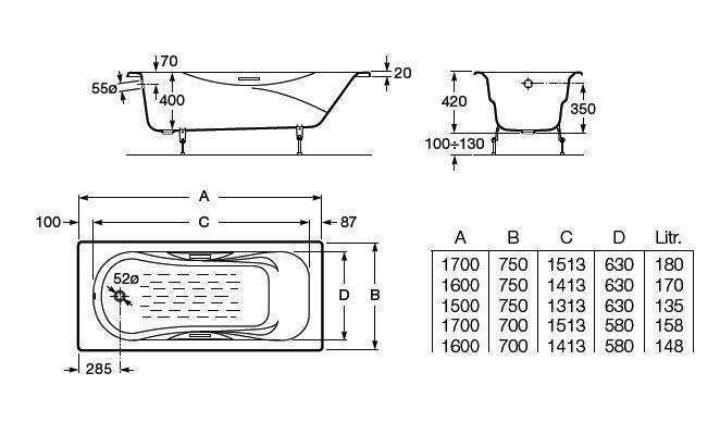 Чугунная ванна Roca Malibu 170x70 2333G0000 купить