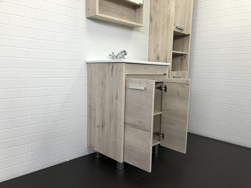 Тумба с раковиной Comforty Марио-60 дуб дымчатый,раковина Quadro 60, 00-00005206CFТумба с раковиной