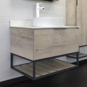 COMFORTY Тумба-умывальник Порто 75 00-00009321Подвесная тумба-умывальник в стиле лофт Порто 75 с одним широким ящиком оснащенным системой плавного закрывания и нижней полкой открытого хранения для полотенец. В основе тумбы - каркас из стального профиля окрашенный в цвет серый графит.