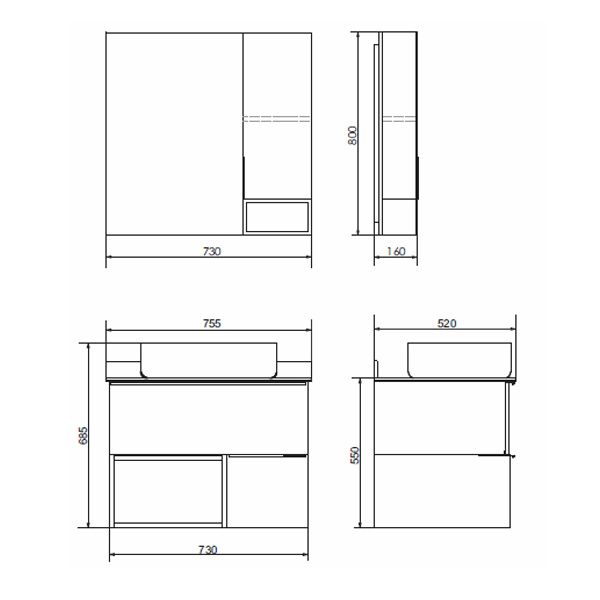 Створка оснащена системой плавного закрывания и черной матовой алюминиевой ручкой. Высококачественное зеркальное полотно с амальгамой на основе серебра. Фасад и корпус из влагостойкого ЛДСП дуб темно-коричневый. За створкой одна горизонтальная полка. Название: Зеркало-шкаф