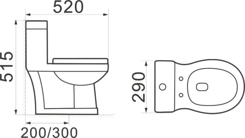 • Прилегание унитаза к стене: