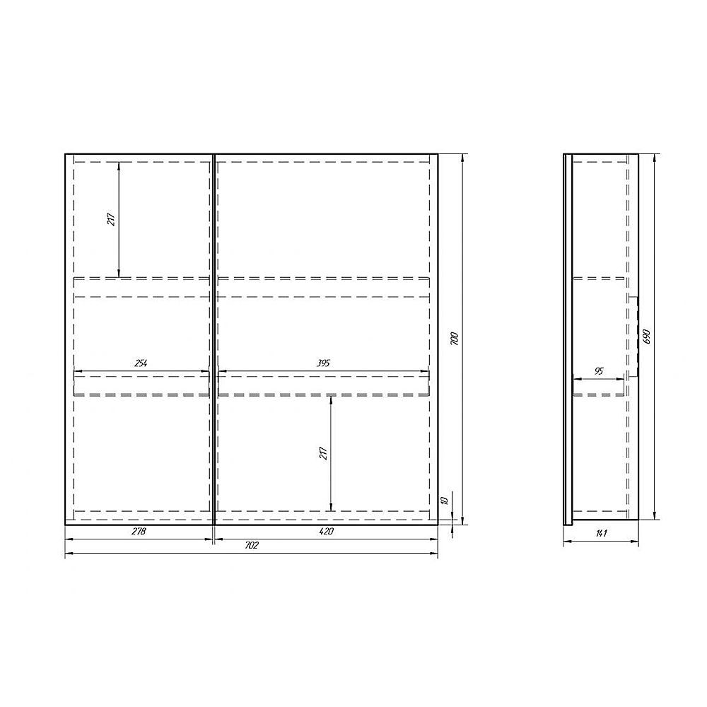 Французское зеркальное полотно. Универсальный зеркальный шкаф. Боковины - глянцевое МДФ. Внутренние стеклянные полочки. Крепление к стене - гребенка. Подходит к любой коллекции Dreja.eco