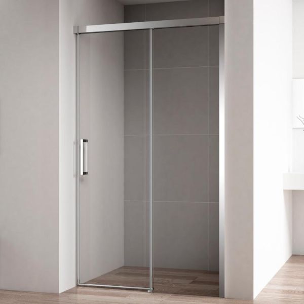 Дверь в проем.Тип дверей: одна раздвижная дверь.Стекло: 8 мм, прозрачное.Исполнение: хром.Поддон: тип АН, А или барьер. Поддон или барьер приобретается отдельно.Особенности: подвижные ролики плавно скользят по металлическим направляющим.