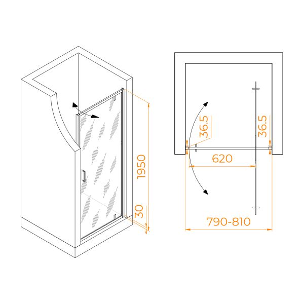 Элегантные стеклянные двери с пристенными профилями придают ванной комнате изысканность и строгость. Модели оснащены маятниковой петлёй, с защитой от провисания и подъёмом двери при открытии. Такой системой будет особенно удобно пользоваться если дверь установлена на плитку с встроенным трапом. Изделия оснащены Распашные двери открываются как наружу, так и внутрь, что обеспечит максимальный комфорт в процессе использования душевого пространства.Благодаря разнообразию размеров, подходят практически каждому клиенту.Ключевые характеристики:
