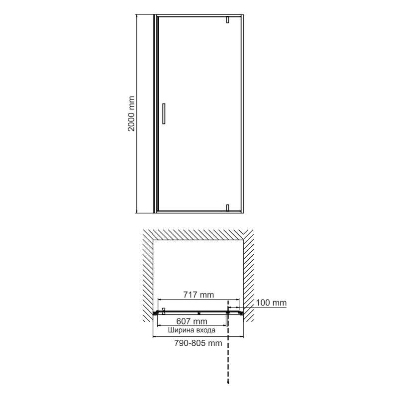 Душевая дверь Wasserkraft Elbe 74P27 80см чёрный матовый купить