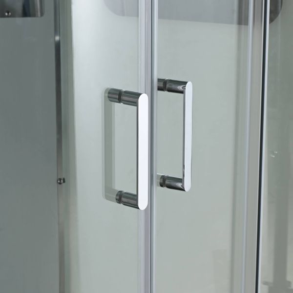 Стильная душевая кабина AvaCan сочетает в себе высокую функциональность, практичность и надежность. При изготовлении применяется безопасное закаленное стекло, надежно фиксируемое алюминиевым профилем.Профиль сделан из алюминия повышенной прочности. Сборка без силикона (увеличивает срок службы, защищает от протечек), внутренняя сборка (облегчает установку и ревизию; позволяет установить в ограниченном пространстве и обойтись без демонтажа других сантехнических приборов), смеситель резьбовой (без хомутов). Двойные металлические ролики дверей (распределение нагрузки на два ролика, увеличивают срок службы). Душевая штанга(позволяет регулировать по высоте ручную лейку), ручная арома-лейка с витамином С (картридж в комплекте,есть возможность замены или удаления картриджа), полочки(из стекла, с ограничителем), сифон с гидрозатвором, сенсорный пульт управления с функциями: блютуз, LED подсветка, радио, вытяжка, гидромассаж спины, тропический (верхний) душ.