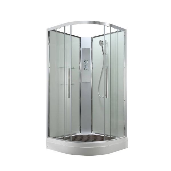 Стильная душевая кабина AvaCan EM2011NT сочетает в себе высокую функциональность, практичность и надежность. При изготовлении применяется безопасное закаленное стекло толщиной 5 мм (прозрачное), надежно фиксируемое алюминиевым профилем. Сборка без силикона (увеличивает срок службы), внутренняя сборка(облегчает установку и ревизию; позволяет установить в ограниченном пространстве), смеситель резьбовой (без хомутов). Съемный экран поддона (позволяет осуществлять ревизию сифона). Цвет профиля хром. Двойные металлические ролики дверей (увеличивают срок службы).В комплекте : душевая штанга, две полочки , арома-лейка с витамином С (картридж съемный),полимерная вставка в поддон(имитация дерева),сифон, ручки дверей из нержавейки , двойные ролики .