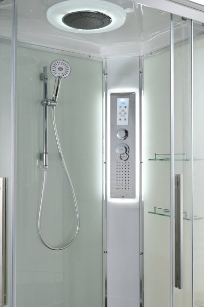 Стильная душевая кабина AvaCan EM2811RLEDT сочетает в себе высокую функциональность, практичность и надежность. При изготовлении применяется безопасное закаленное стекло толщиной 5 мм (прозрачное), надежно фиксируемое алюминиевым профилем. Сборка без силикона (увеличивает срок службы), внутренняя сборка(облегчает установку и ревизию; позволяет установить в ограниченном пространстве), смеситель резьбовой (без хомутов). Съемный экран поддона (позволяет осуществлять ревизию сифона). Цвет профиля хром. Двойные металлические ролики дверей (увеличивают срок службы).В комплекте : душевая штанга, две полочки , тропический (верхний) душ, арома-лейка с витамином С (картридж съемный),полимерная вставка в поддон(имитация дерева),сифон, ручки дверей из нержавейки , двойные ролики ,пульт сенсорный(Блютуз ,LED подсветка ,радио ,вытяжка),гидромассаж спины.