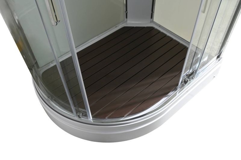 Стильная душевая кабина AvaCan EM2811RT сочетает в себе высокую функциональность, практичность и надежность. При изготовлении применяется безопасное закаленное стекло толщиной 5 мм (прозрачное), надежно фиксируемое алюминиевым профилем. Сборка без силикона (увеличивает срок службы), внутренняя сборка(облегчает установку и ревизию; позволяет установить в ограниченном пространстве), смеситель резьбовой (без хомутов). Съемный экран поддона (позволяет осуществлять ревизию сифона). Цвет профиля хром. Двойные металлические ролики дверей (увеличивают срок службы).В комплекте : душевая штанга, две полочки , тропический (верхний) душ, арома-лейка с витамином С (картридж съемный),полимерная вставка в поддон(имитация дерева),сифон, ручки дверей из нержавейки , двойные ролики .
