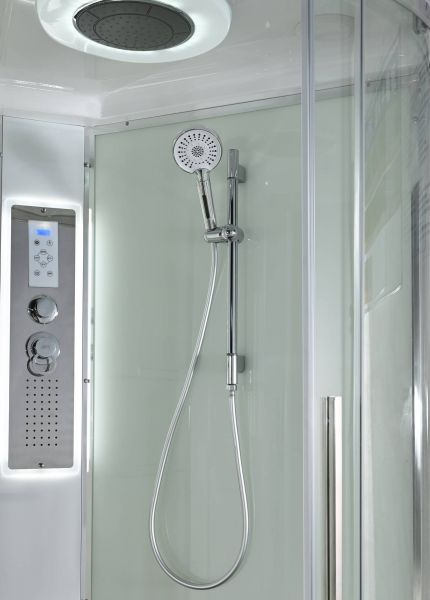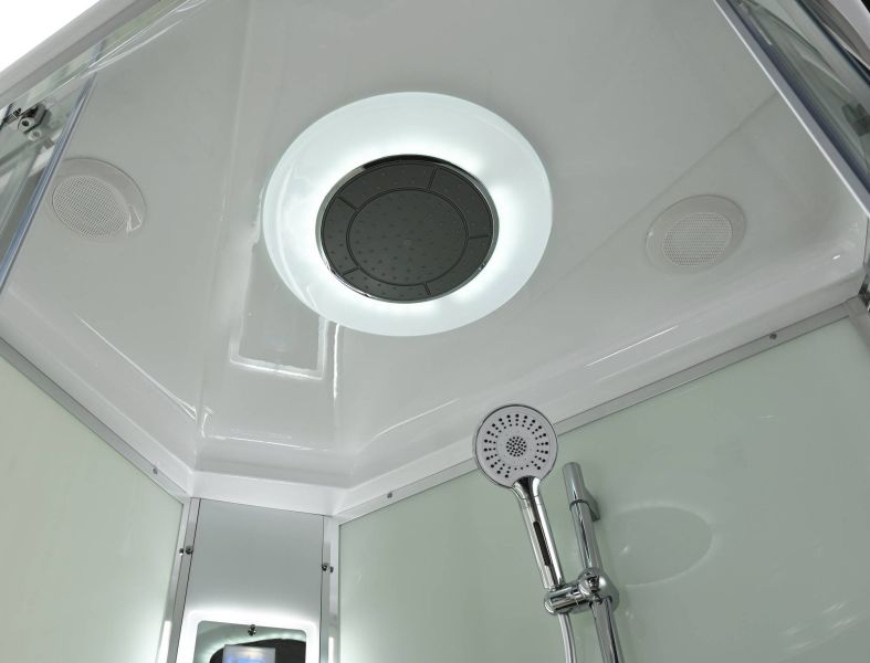 Стильная душевая кабина AvaCan EM2812LLEDT сочетает в себе высокую функциональность, практичность и надежность. При изготовлении применяется безопасное закаленное стекло толщиной 5 мм (прозрачное), надежно фиксируемое алюминиевым профилем. Сборка без силикона (увеличивает срок службы), внутренняя сборка(облегчает установку и ревизию; позволяет установить в ограниченном пространстве), смеситель резьбовой (без хомутов). Съемный экран поддона (позволяет осуществлять ревизию сифона). Цвет профиля хром. Двойные металлические ролики дверей (увеличивают срок службы).В комплекте : душевая штанга, две полочки , тропический (верхний) душ, арома-лейка с витамином С (картридж съемный),полимерная вставка в поддон(имитация дерева),сифон, ручки дверей из нержавейки , двойные ролики ,пульт сенсорный(Блютуз ,LED подсветка ,радио ,вытяжка),гидромассаж спины.