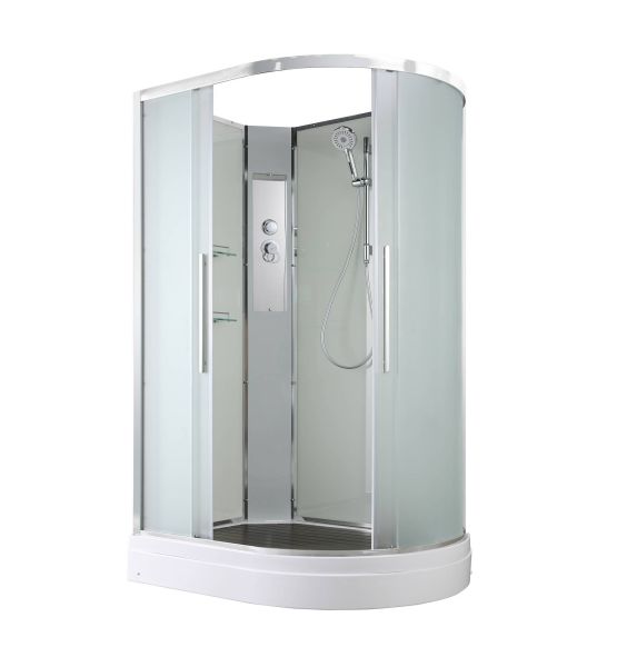 Стильная душевая кабина AvaCan EM2912LN сочетает в себе высокую функциональность, практичность и надежность. При изготовлении применяется безопасное закаленное стекло толщиной 5 мм (матовое), надежно фиксируемое алюминиевым профилем. Сборка без силикона (увеличивает срок службы), внутренняя сборка(облегчает установку и ревизию; позволяет установить в ограниченном пространстве), смеситель резьбовой (без хомутов). Съемный экран поддона (позволяет осуществлять ревизию сифона). Цвет профиля хром. Двойные металлические ролики дверей (увеличивают срок службы).В комплекте : душевая штанга, две полочки , арома-лейка с витамином С (картридж съемный),полимерная вставка в поддон(имитация дерева),сифон, ручки дверей из нержавейки , двойные ролики .