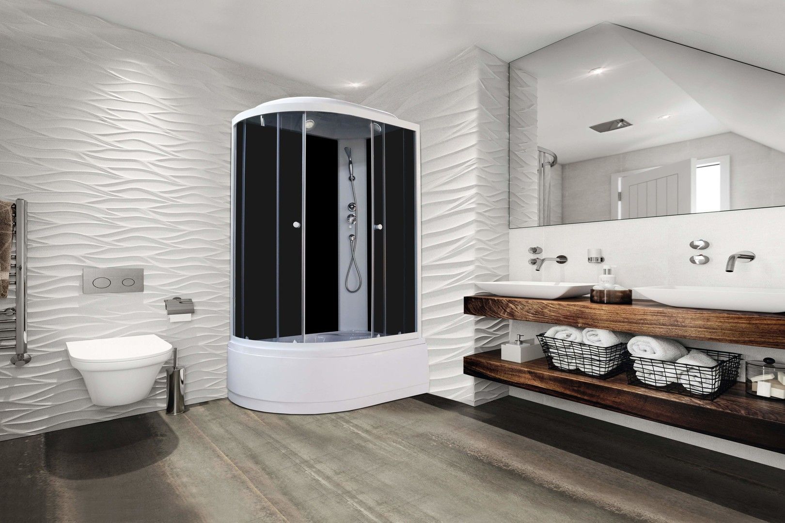 Поддон: асимметричный, высокий 42 см. В высоком поддоне удобно купить детей и животных, замачивать вещи. Литое сиденье можно использовать как дополнительное место для хранения душевых принадлежностей.