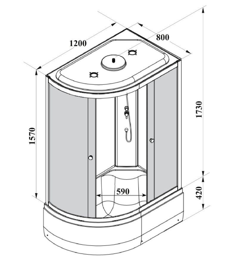 - Поддон: высокий 42 cм, асимметричный, с рельефным дном.