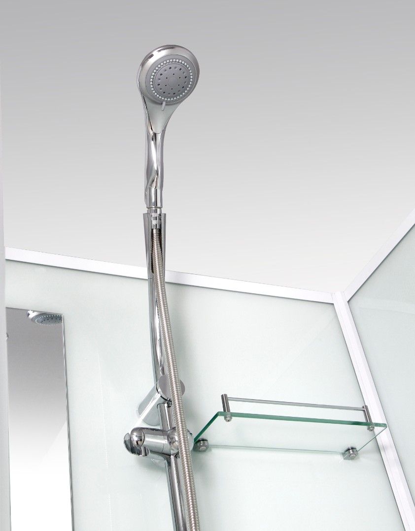 Стекло 6 мм. Задняя стенка - крашеное непрозрачное белое . Фронтальное стекло и боковые стекла прозрачные. Дверь стекло прозрачное.