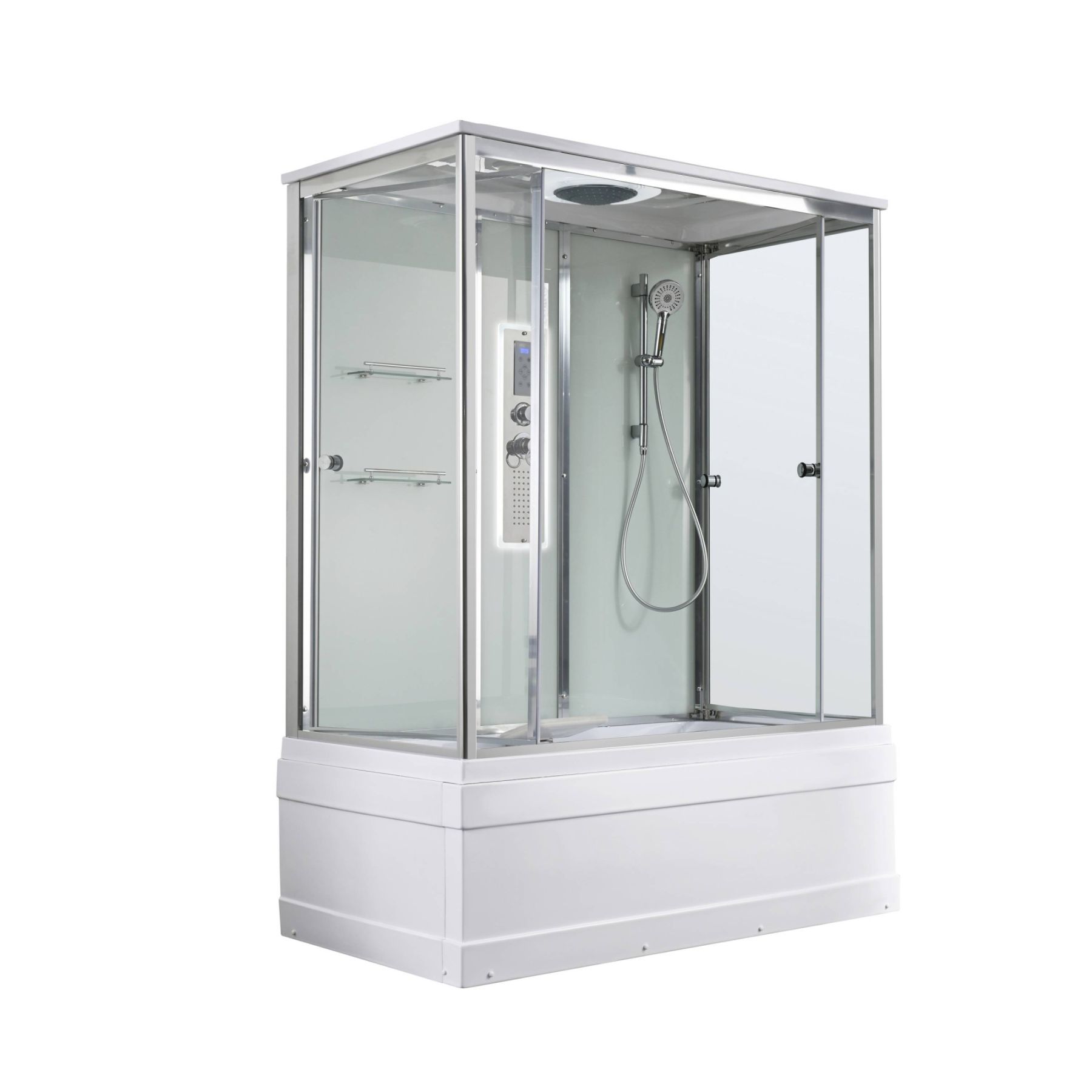 Стильная душевая кабина AvaCan сочетает в себе высокую функциональность, практичность и надежность. При изготовлении применяется безопасное закаленное стекло, надежно фиксируемое алюминиевым профилем.Профиль сделан из алюминия повышенной прочности. Сборка без силикона (увеличивает срок службы, защищает от протечек), внутренняя сборка (облегчает установку и ревизию; позволяет установить в ограниченном пространстве и обойтись без демонтажа других сантехнических приборов), смеситель резьбовой (без хомутов). Съемный экран поддона (позволяет осуществлять подключение и ревизию сифона).Двойные металлические ролики дверей (распределение нагрузки на два ролика, увеличивают срок службы). Душевая штанга(позволяет регулировать по высоте ручную лейку), ручная арома-лейка с витамином С (картридж в комплекте,есть возможность замены или удаления картриджа), полочки(из стекла, с ограничителем), сифон с гидрозатвором, сенсорный пульт управления с функциями: блютуз, LED подсветка, радио, вытяжка, гидромассаж спины, тропический (верхний) душ.