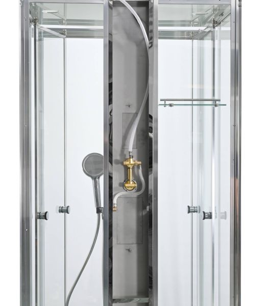 Стильная душевая кабина AvaCan сочетает в себе высокую функциональность, практичность и надежность. При изготовлении применяется безопасное закаленное стекло, надежно фиксируемое алюминиевым профилем. Профиль сделан из алюминия повышенной прочности. Сборка без силикона (увеличивает срок службы, защищает от протечек), внутренняя сборка (облегчает установку и ревизию; позволяет установить в ограниченном пространстве и обойтись без демонтажа других сантехнических приборов), смеситель резьбовой (без хомутов).Двойные металлические ролики дверей (распределение нагрузки на два ролика, увеличивают срок службы). Душевая штанга(позволяет регулировать по высоте ручную лейку), ручная арома-лейка с витамином С (картридж в комплекте,есть возможность замены или удаления картриджа), полочки(из стекла, с ограничителем), сифон с гидрозатвором.
