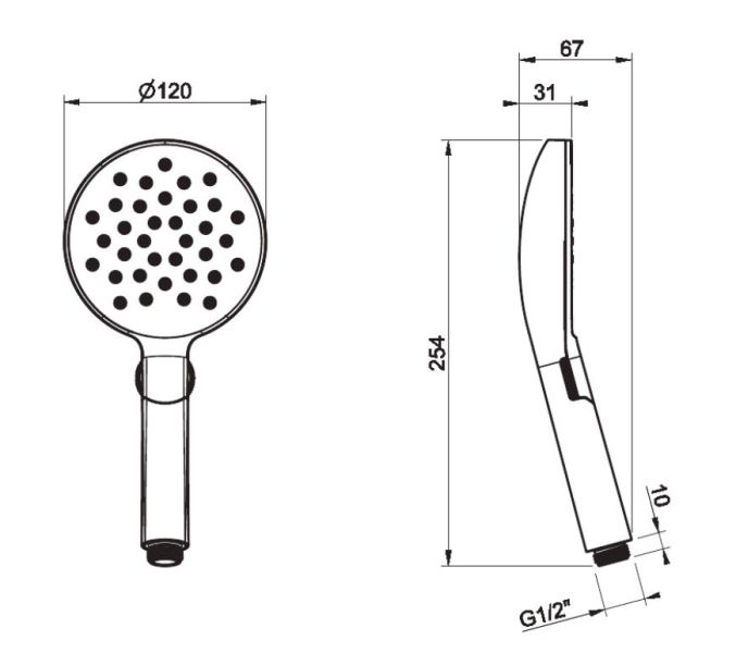 - Размер ручного душа, см:12