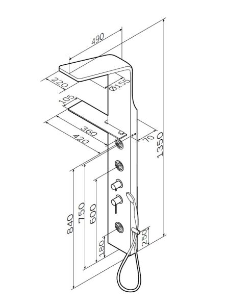 - Верхний душ 155 мм