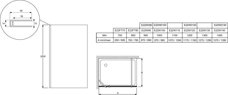 Душевая перегородка для ванны Jacob Delafon CONTRA E22WD120-GA 120*200