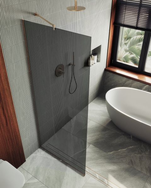 Стеклянная душевая перегородка в профиле - стильный и функциональный элемент, предназначенный для разделения пространства в ванной комнате. Перегородка изготовлена из закаленного стекла, обеспечивающего безопасность и долговечность. Профиль из анодированного аллюминия добавляет конструкции прочности и устойчивости. Благодаря разнообразию размеров и дизайнов, стеклянная душевая перегородка идеально впишется в любой интерьер. Закаленное стекло , цвет графит , толщина 8 мм , 1950*790-1 шт.