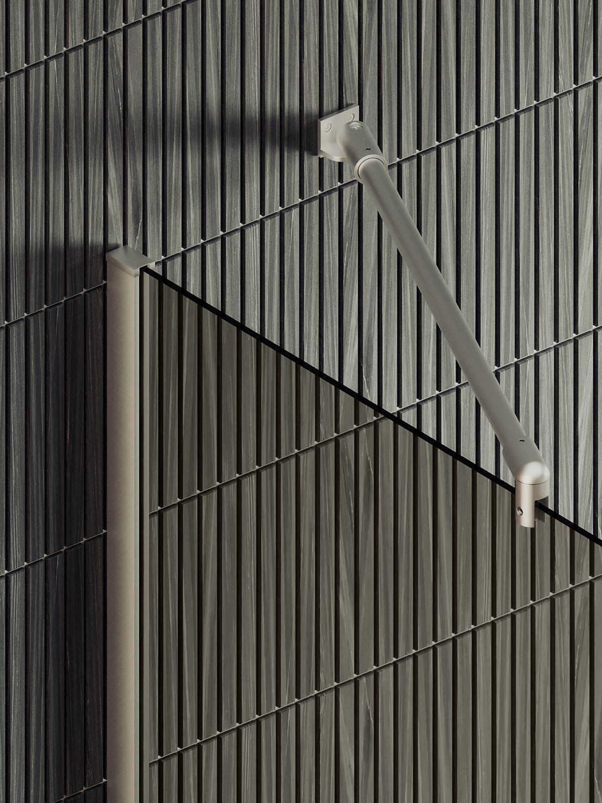 Душевая перегородка в профиле с полотенцесушителем представляет собой компактное и функциональное решение для разделения пространства в ванной комнате . Она изготовлена из закаленного стекла,анодированного алюминиевого профиля, что обеспечивает прочность и долговечность конструкции. Закаленное стекло , цвет бронза , толщина 8 мм , 1950*790-1 шт.
