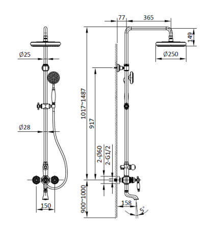Размер верхнего душа, см:25