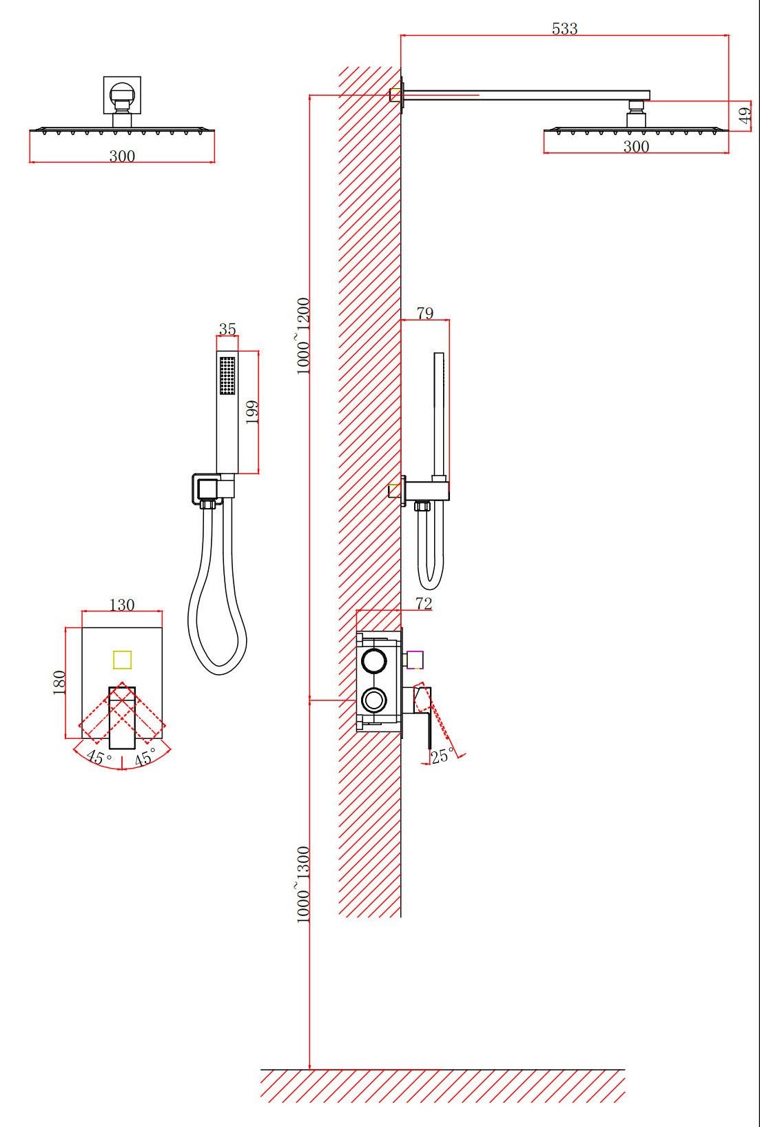 - Размер верхнего душа, см:30