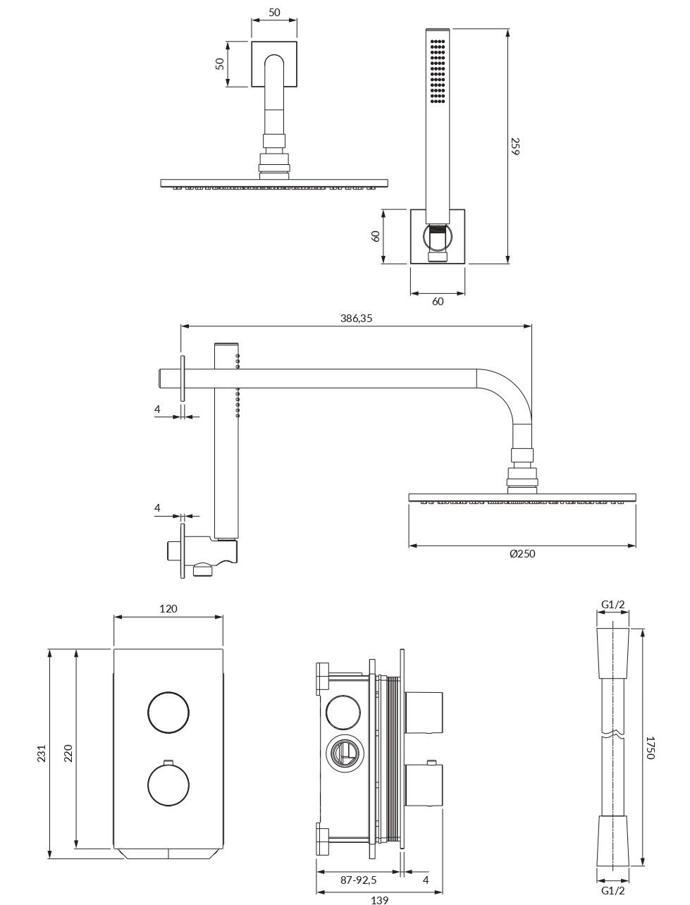 - Размер верхнего душа, см:25