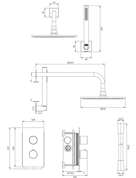 CONTOUR | термостатическая душевая система скрытого монтажаЦвет: хром