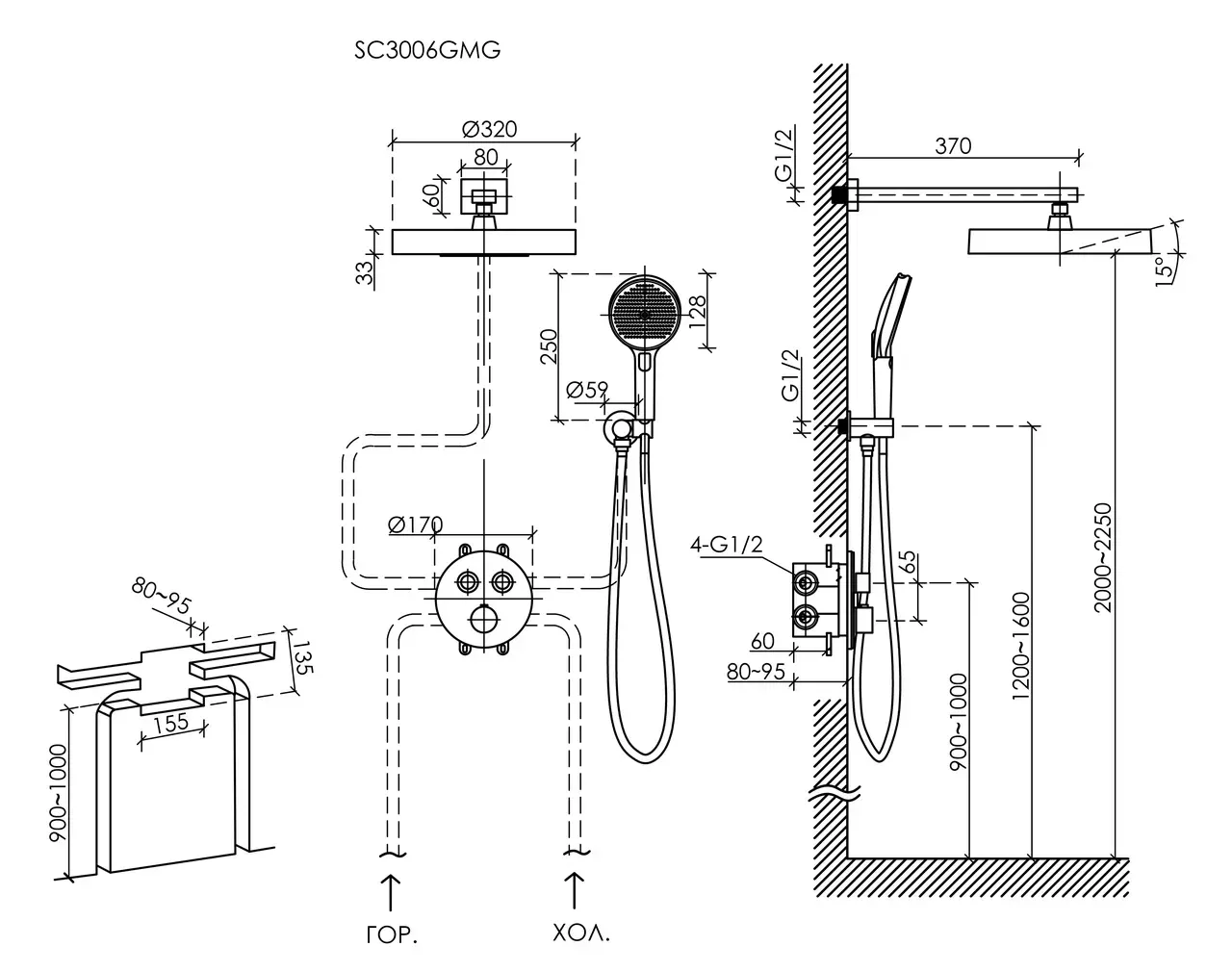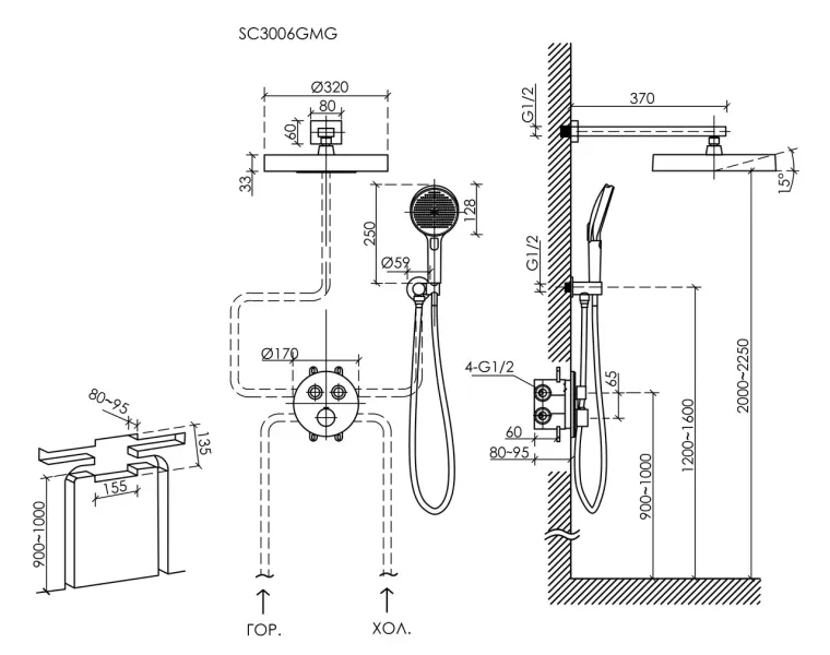- Размер верхнего душа, см:32