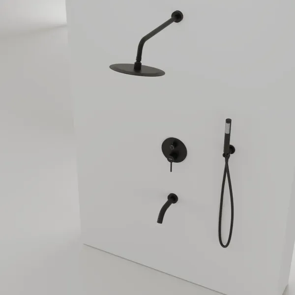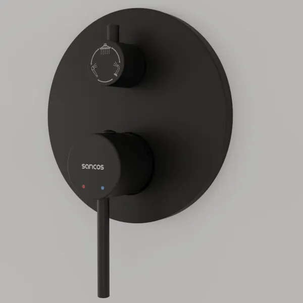 Душевой комплект SANCOS Select встраиваемый для ванны/душа, с внутренней частью, верхним, ручным душем, изливом и шлангом в комплекте, цвет черный матовый, арт.SC3004MB