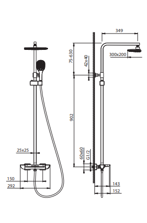 • Размер верхнего душа, см: