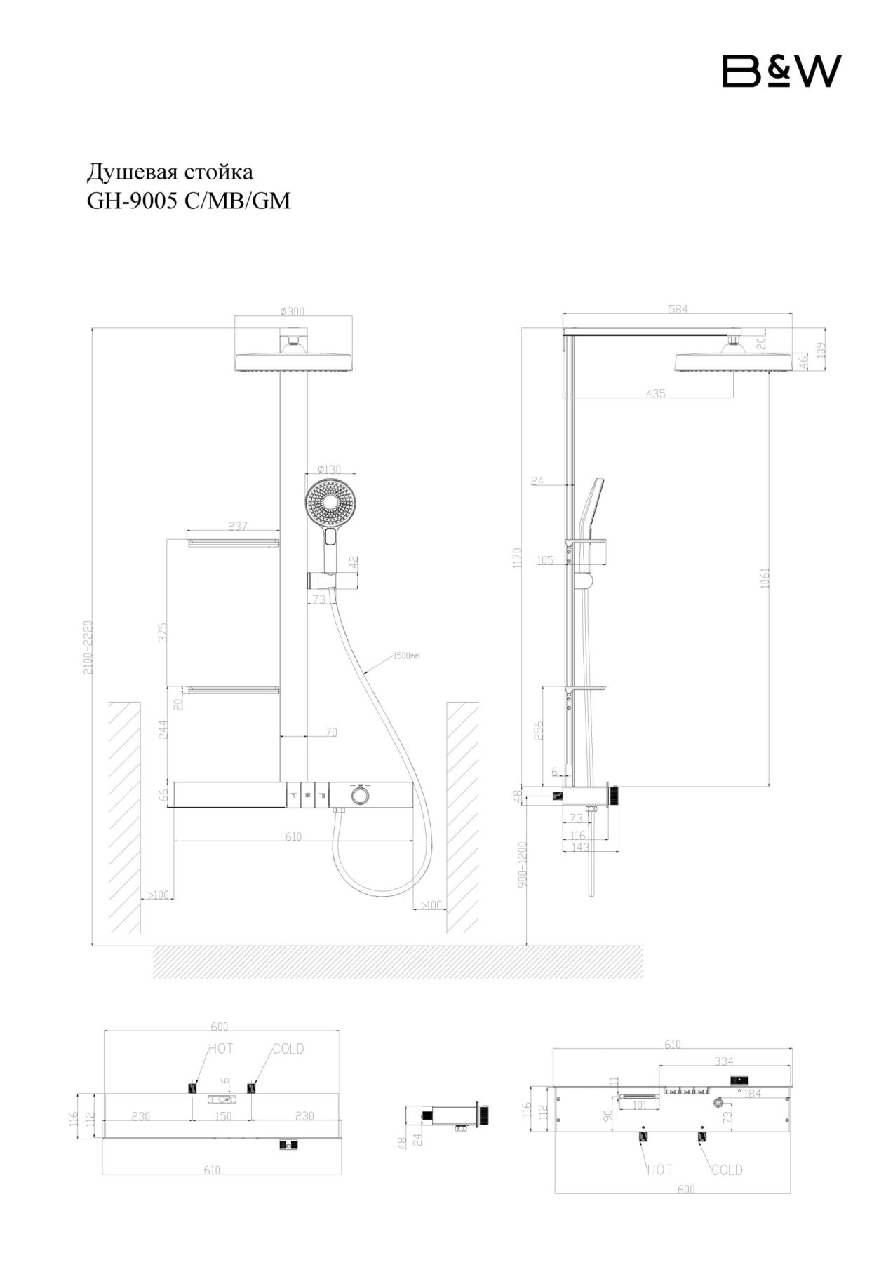В комплекте также идут две полочки 237×105 мм для хранения необходимых аксессуаров в ванной комнате. Модель GH-9005 не только стильно выглядит, но и делает вашу ванную комнату удобной и функциональной.