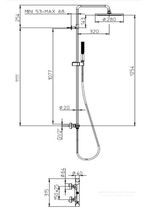 - Размер верхнего душа, см:28