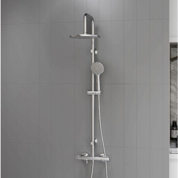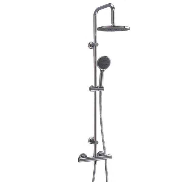 Душевая система Dorff New plus D0710500. Выгода в комплекте! Душевая система и смеситель для ванны и душа c термостатом по привлекательной цене. Душевая система Futura с тропическим душем, ручным душем с 3 функциями и длинным шлангом в 1500 мм - просто находка в своем сегменте. А стойки возможностью регулировки по высоте и шланги с защитой от перекручивания станут приятным бонусом для тех, кто ценит эргономичность и функциональность.Термостат душевых систем в элегантных современных размерах предотвратит от ожогов собрал в себе лучшие немецкие качества: стильный дизайн, компактные размеры, европейское качество, прочность и долговечность.Бренд Dorff