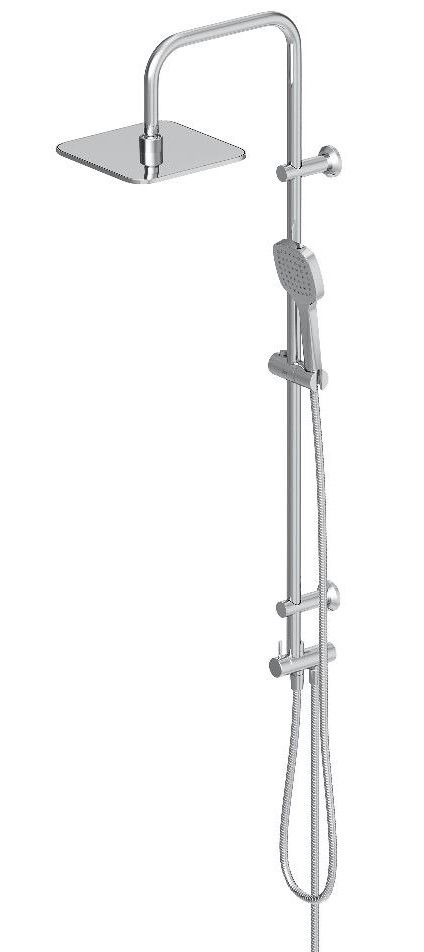 Стильные и большие квадратные лейки обеспечат комфортный напор воды, а слайдер ручного душа и крепление верхнего позволит настроить нужное положение.