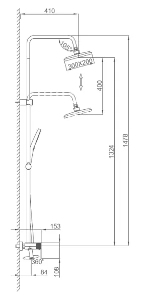 смеситель с держателем лейки - 1 шт., душевой шланг - 1 шт., душевая лейка - 1 шт., комплект отражателей - 1 шт., комплект эксцентриков - 1 шт.