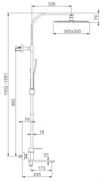 - Размер верхнего душа, см:30
