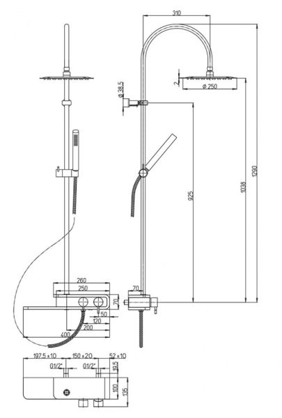 - Наличие верхнего душа и ручной лейки.