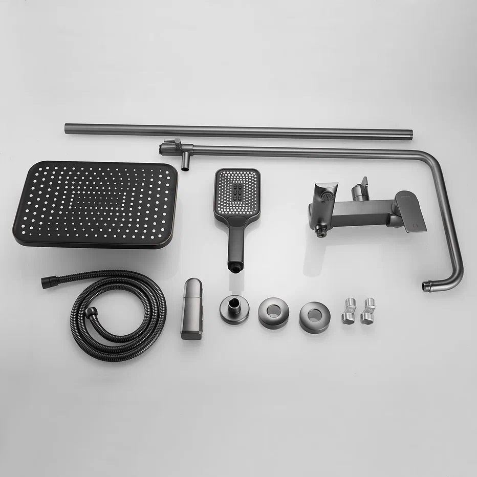 Душевая система Shevanik S9136T, оружейная сталь.Количество режимов струи: 3.Размер верхнего душа: 31x21,5 см.Управление: рычажное.Излив для наполнения ванны: да.