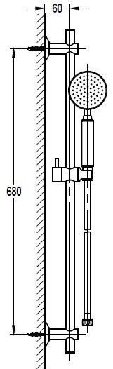 Оснащение: Штанга, регулируемый держатель ручного душа, душевой шланг PVC 150 см, ручной душ